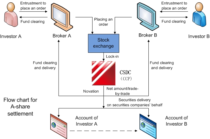 The securities clearing service is a post-transaction service. Essentially it is the process by which both parties to a transaction determine the amount of money or securities that should be paid and consequent settlement process. Through the securities clearing process, the buyer obtains the securities, and the seller receives money. The clearing service includes clearing and settlement. Clearing is the process of calculating the amount of securities and capital that should be received and paid by the two parties on the clearing date according to the results of the securities transaction. Settlement is the process of organizing the two parties in delivering the securities and capital payment according to the results of the clearing.
